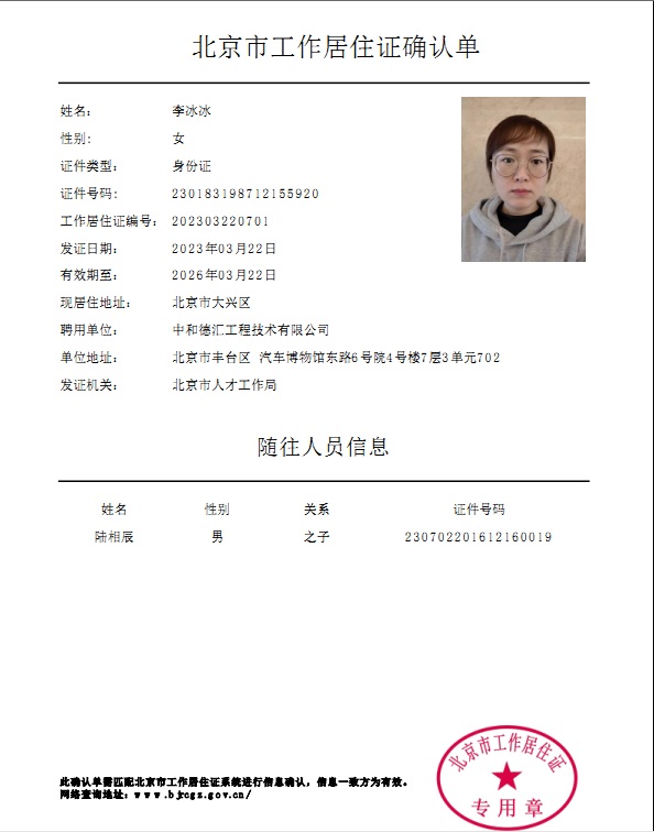 热烈祝贺我公司又有2名人员获得北京市工作居住证!