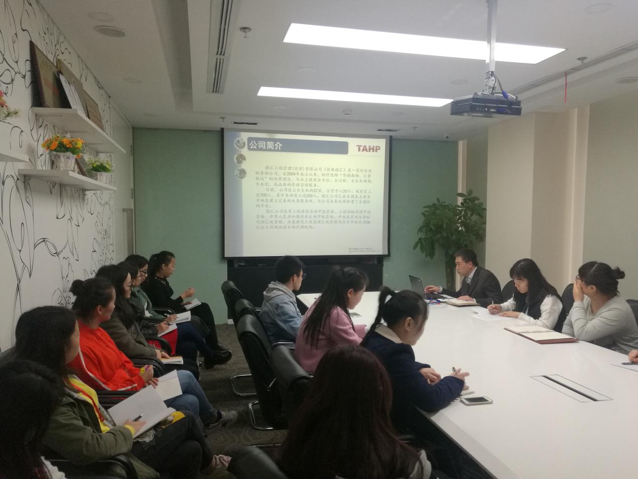 下午2点钟,大家在公司大会议室齐坐一堂,由段总给大家讲述了德汇公司由组建到业务发展至今这一路的历程、业绩,公司在发展中不断做出调整,不断改变,以适应市场的需求,在这过程中公司形成了怎样的企业文化,同时,还讲解了新员工如何正确认识自我,如何做好自己的职业生涯规划等等。