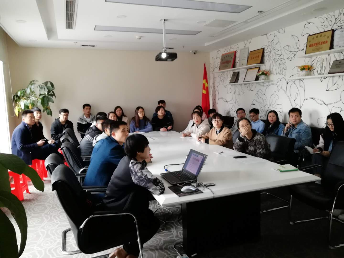 3月30日上午,公司组织今年第一季度新员工入职培训,造价二部经理胡彦华介绍了公司基本情况和业务业绩,综合部经理唐辉介绍了公司行政和人事相关制度规定,培训取得了良好的效果。