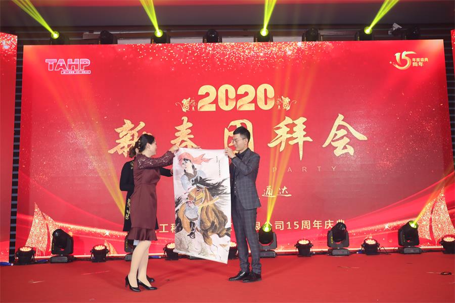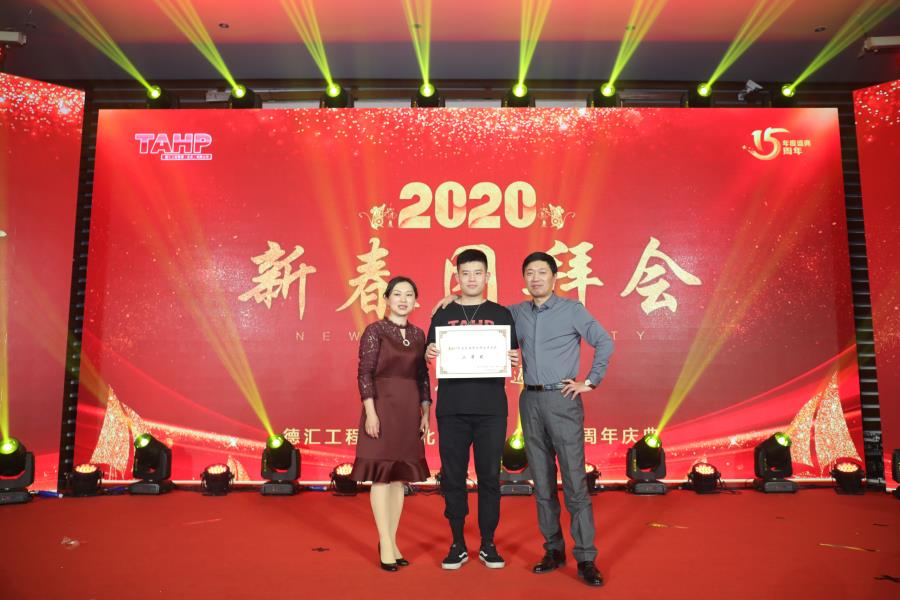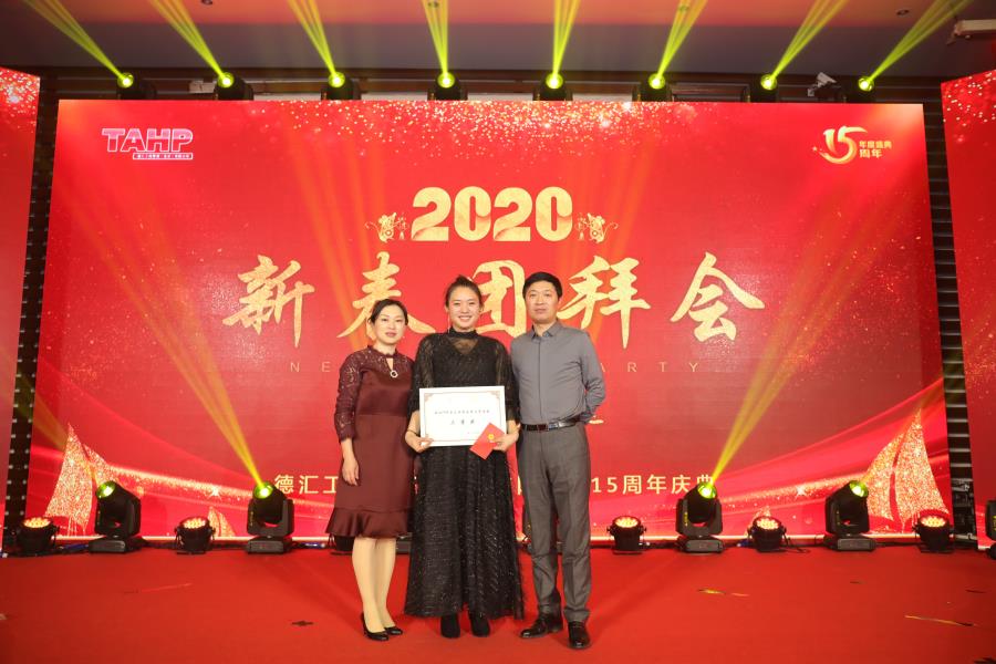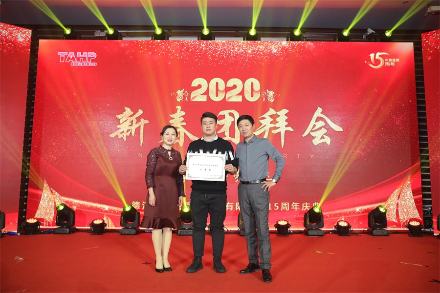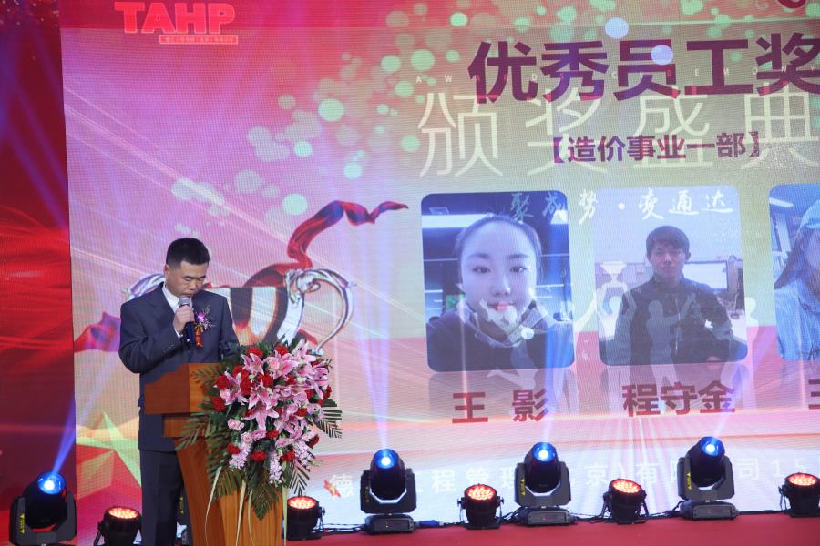第二部分:2020年新春团拜会。公司精心准备了10个原创节目汇报演出,江西分公司专程带来了精彩舞蹈,山东分公司现场送来了礼物。造价一部的小品《非诚不找》,表演的非常到位,引得全场笑声、掌声不断,最终获得节目评选一等奖;招标部的手影舞《天天向上》,表演形式新颖,寓意深刻,耐人寻味,当德汇15周岁生日蛋糕出现的时候把会场气氛推向了高潮,获得节目评选二等奖;最后公司管理层上台亮相为大家合唱了励志歌曲《我们都是追梦人》,台上台下互动,赢得了阵阵掌声和欢呼声!
