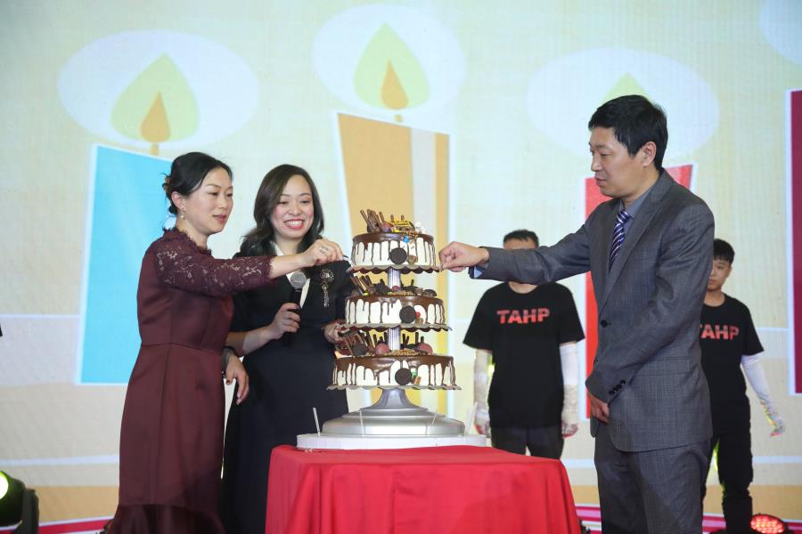 第三部分:晚宴。詹芙蓉董事长致祝酒词,大家在一片欢声笑语中共饮杯中酒,酒喝干,再斟满,这是一路走来的情谊,期间我们还穿插了微信抽奖环节,共抽取三等奖10人,二等奖6人,一等奖2人,特等奖1人。伴着祝福,伴着笑语和歌曲,周年庆典的欢乐时光也随即圆满落幕!